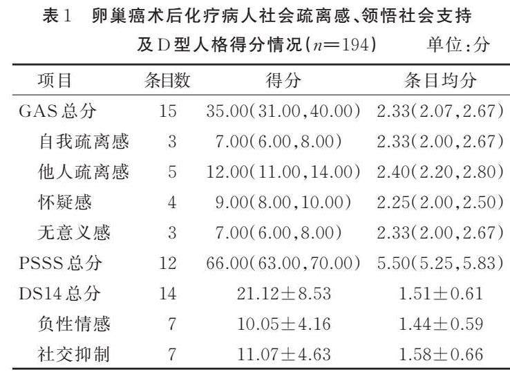 卵巢癌术后化疗病人社会疏离现状及影响因素研究