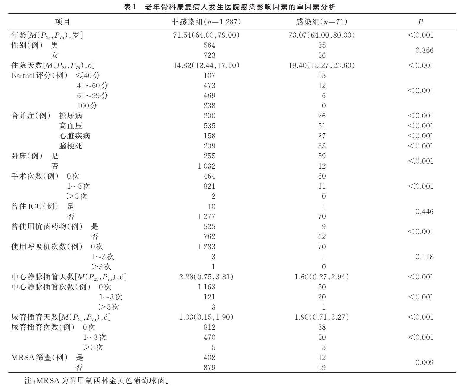 老年骨科康复病人医院感染影响因素及风险预测模型的构建