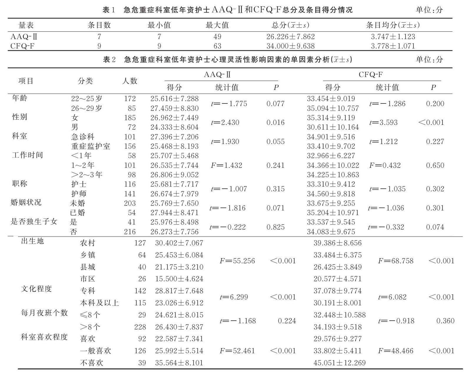 急危重症科室低年资护士心理灵活性现状及影响因素分析