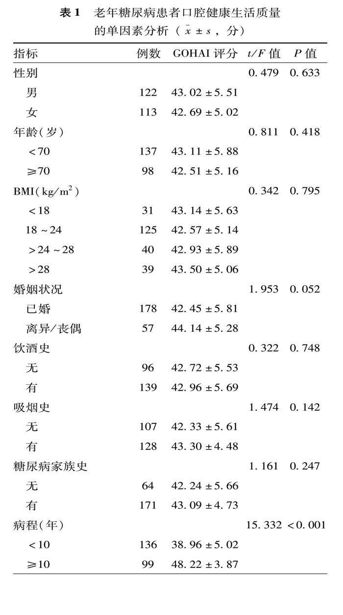 老年糖尿病患者口腔健康生活质量相关因素的多元线性回归分析