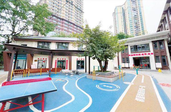 2025年10月30日,上午10点,重庆市渝中区石油路街道石油路社区二普小区,秋天的阳光柔和地洒在新铺的蓝色塑胶步道上。我站在这片光亮里,有些恍惚——若不是抬眼望见四周密集的高楼,我几乎忘记,这是一个建成于20世纪80年代的老旧小区。
