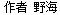 野海,中国作家协会会员,重庆市作家协会全委会委员,重庆文学院签约作家,主席,作品散见于《中国作家》《民族文学》《红岩》《山西文学》等文学期刊,著有长篇小说《桶子里的张九一》、中短篇小说集《雪地阳戏》等。