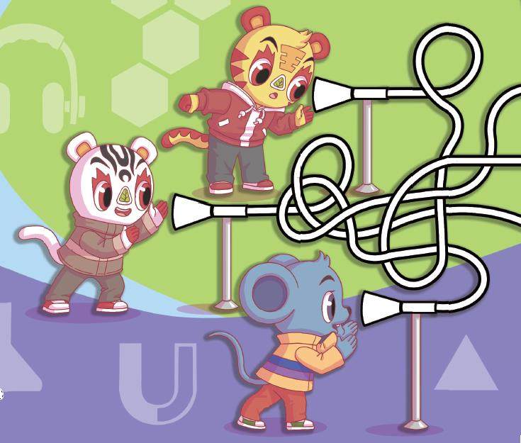 请判断布老虎、鹿小美、孙空空在通过传声管道和谁对话,并给3根管道涂上不同的颜色。悄悄告诉你:如果你先给管道涂好颜色,就能轻而易举地知道与他们对话的分别是谁啦!