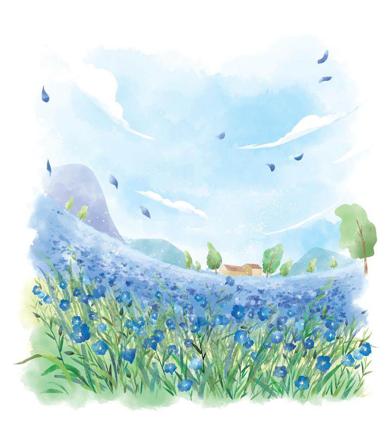 我常常会想起故乡。那是晋北黄土高原上的一个小县城,它的周围群山环绕,绿树成荫。高高低低、宽宽窄窄的田野里,生长着各种各样的农作物,有黄豆、黑豆、豌豆、谷子、黍子、莜麦、荞麦等。其中最让我着迷的,就是一种叫胡麻的植物了。