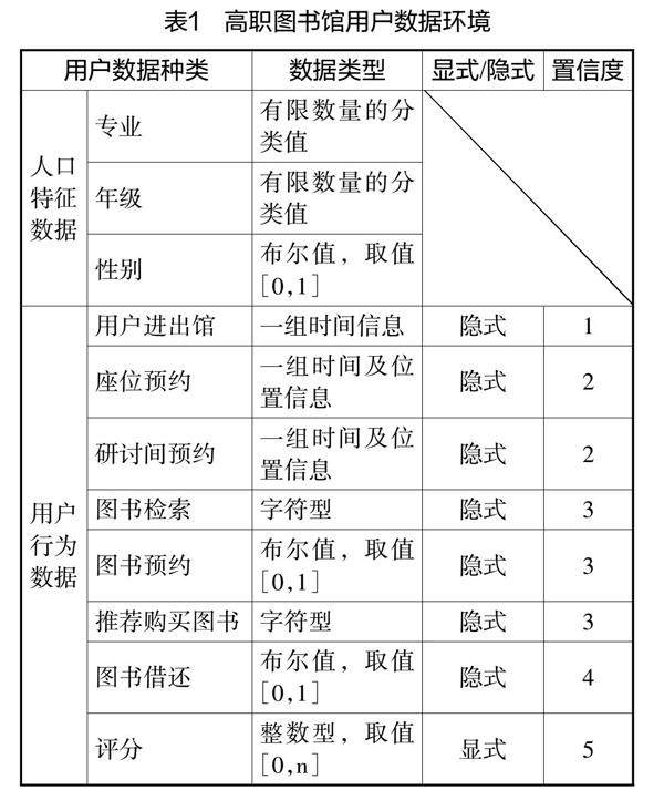 高职图书馆用户数据环境分析及推荐算法适用性研究