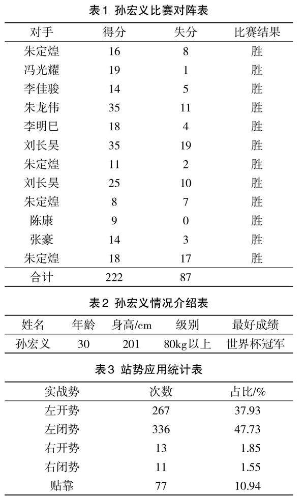 我国男子跆拳道运动员孙宏义技战术特征分析