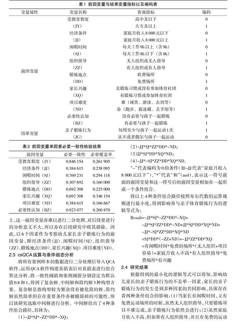 摘要:本研究运用清晰集定性比较分析方法(csQCA),从多因素协同影响的角度,研究幼儿家长亲子体育锻炼行为发生的多因素组合路径。结果表明:(1)当家长有闲暇时间、又有免费的运动场所的时候,虽然无人组织指导,只要锻炼项目不难完成,亲子锻炼行为依然会进行;(2)虽然家庭月收入不高,但如果有人组织指导、并且有免费的运动场所,再加上家长有运动兴趣,亲子锻炼行为也会发生。(剩余7812字)