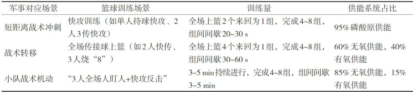 [Abstract] Basketballisahighlyomprehensiveand high-intense intermittentsport,whoseenergysupplycharacteristics are highlyconsistent with the energy supply mode ofthe military in carying outcommon combat tasks.Both show theenergysupply characteristics of mainly anaerobic and supplemented by aerobic,indicating thatbasketballtraining holds significant supplementary value for military sports training. By analyzing the energy supply characteristics of basketball,this research condensesbasketballtraining methods based on the principles of energysupply systemand the transfer principles ofsports modes,and applies them to military sports training.Theaimis to expand thecontentof militarysports training,optimizetraining methodologies,and providetraining references for enhancingthebasicphysical fitnessand combat physical fitness of officers and soldiers.