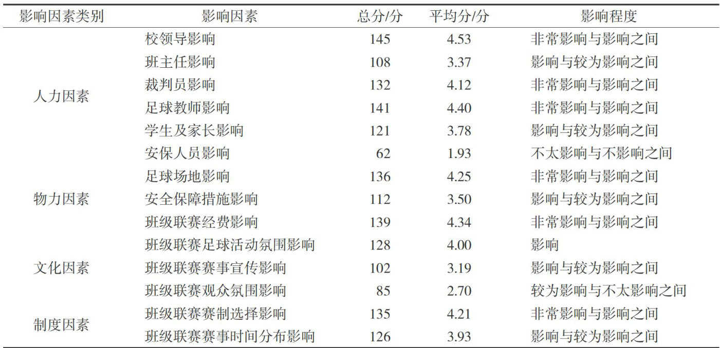 [Keywords] Campus football;Class leagues;Influencing factors; Characteristic schools
