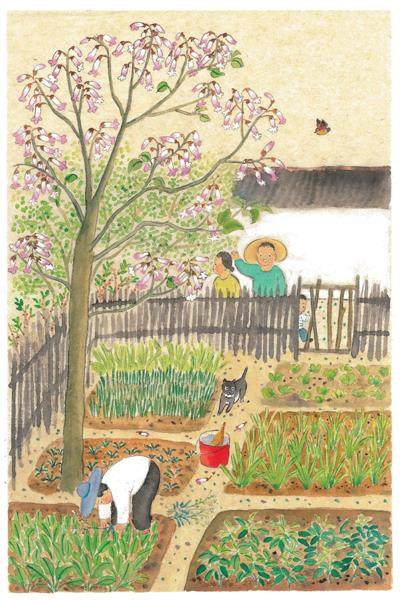 南山上地多,大鸿开垦了很大一块菜地。这块地里有一棵泡桐,春天树头开满甜腻腻的花。