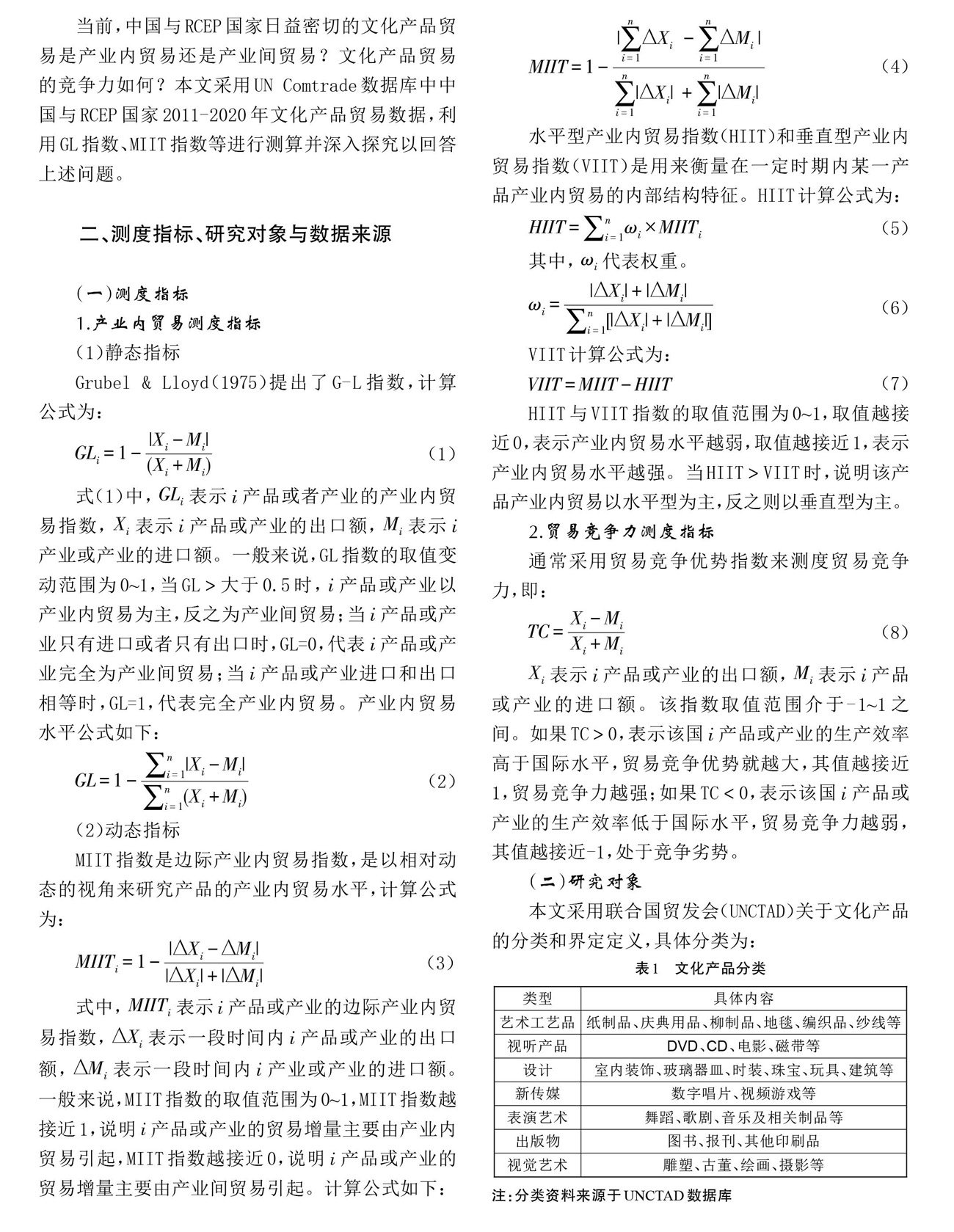 中国与RCEP国家文化产品产业内贸易及贸易竞争力研究