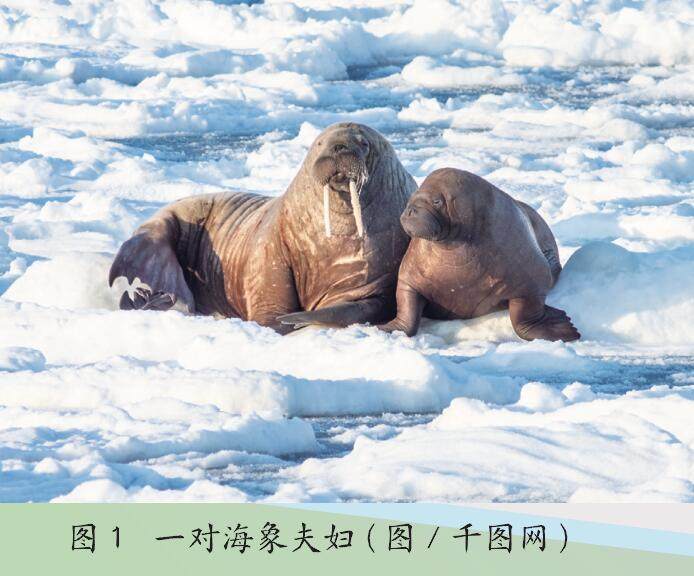 海象生活在寒冷的北极,为抵御异常寒冷的海水,它有自己独特的御寒小妙招。海象有着厚厚的皮下脂肪层,当它处于冰冷的海水中时,体内的毛细血管收缩,血液只能在脂肪层下流动,这时的脂肪层就像一件“棉袄”,对海象起到了保暖作用。此时海象的皮肤看上去是白色的。