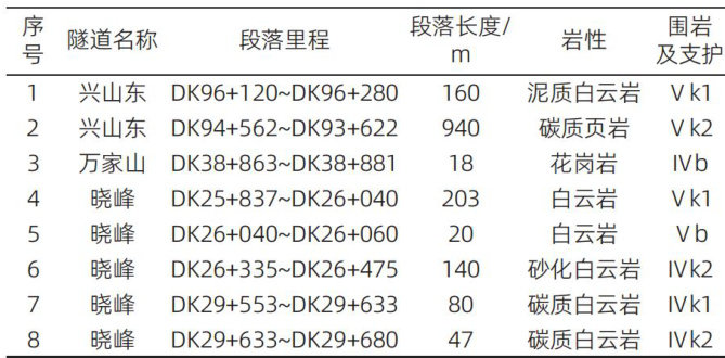 新建宜昌一郑万高铁(兴山站)联络线(简称“宜兴铁路”)在其他项目隧道机械化配套施工的基础上,选择了7座隧道的多个工作面,采用加强型机械化配套工装(简称“大机配套”)全断面开挖工法施工。这些工作面围岩整体条件较好,但局部夹杂了IV级较弱、V级较强的围岩段落,无法直接采用全断面开挖通过。研究人员对比分析了超前注浆后全断面开挖工法、常规三台阶工法与大机配套微台阶工法的特点,最终选择采用大机配套微台阶工法安全快速地通过了这些段落,充分发挥了大机配套工装效率[1-2]。(剩余4487字)