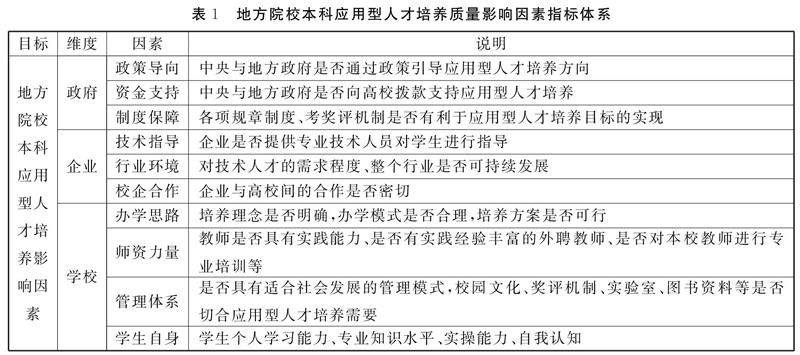 地方院校本科应用型人才培养质量的影响因素研究