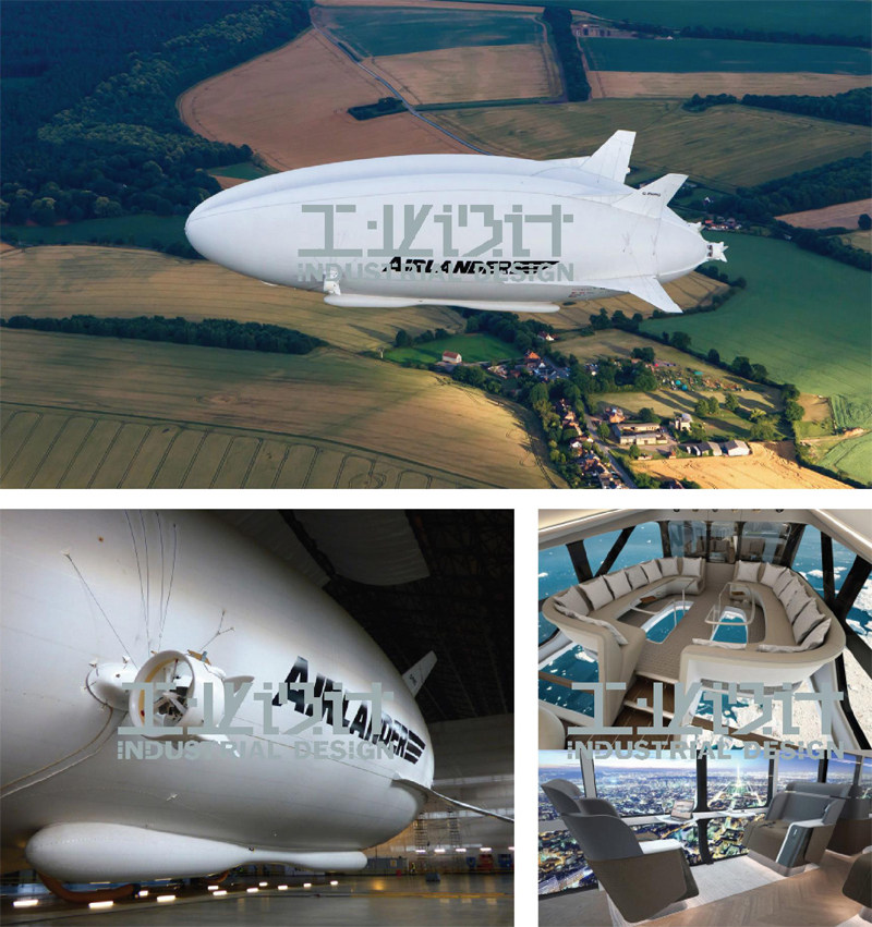 Flying bum混合动力飞艇采用低碳设计,配备由氢燃料电池驱动的电动机。最新版本的飞艇将产生“比同类传统飞机少75%的排放”。这架飞艇投产后将能够在短途航线上搭载100名乘客,但仍将配备两台柴油发动机。