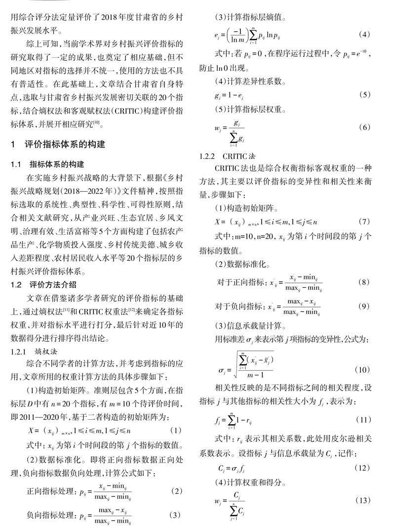 甘肃省乡村振兴发展水平评价研究