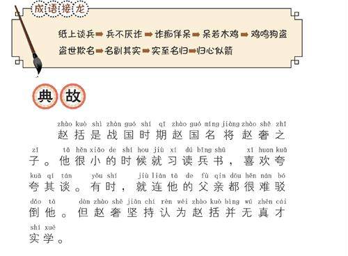 释义:纸上:指书本上。兵:用兵之道。在书本上谈论用兵,到实际中却用不上。(剩余35字)