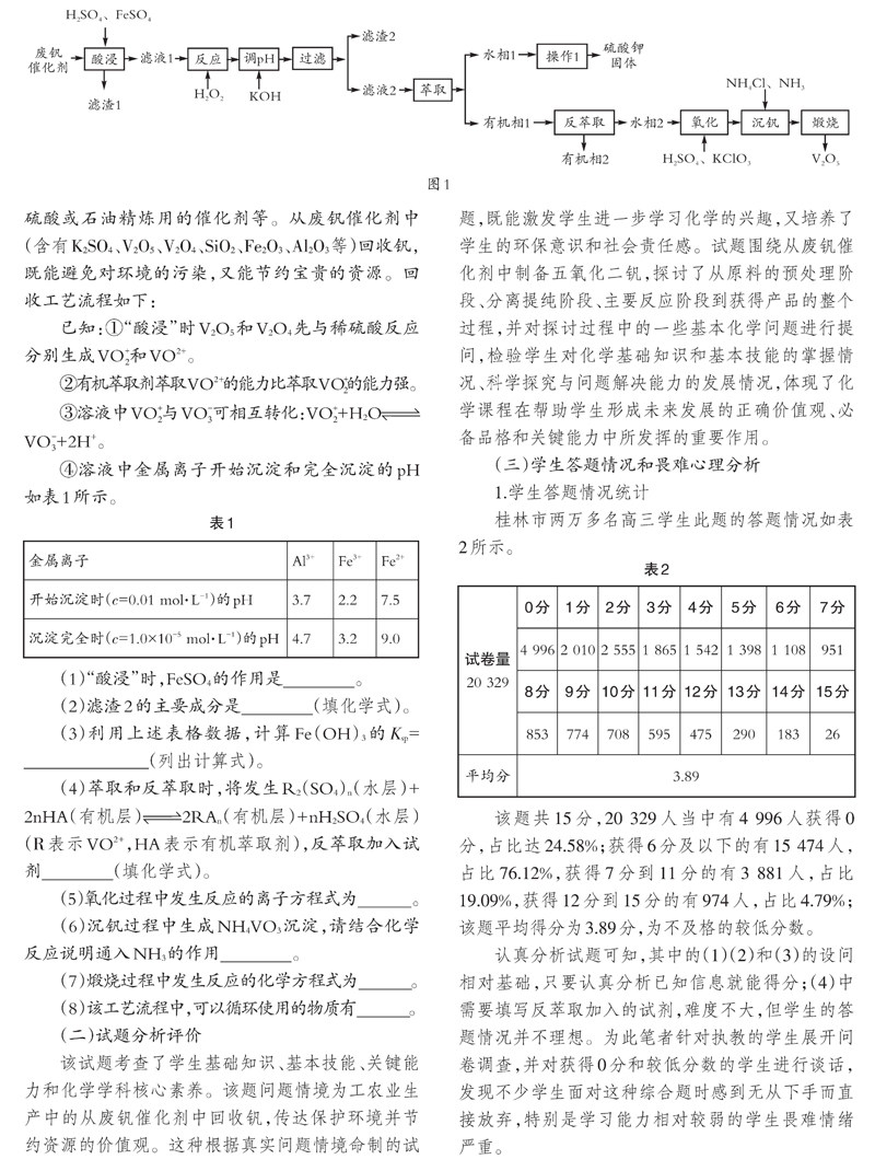 【摘要】本文阐述化学工艺流程题的特点以及化学课程标准对工艺流程的考查要求,结合一道试题分析学生在解答化学综合题时存在畏难心理的原因,论述提高学生解答化学综合题的能力的策略,提出加强方法指导、开展成就归因训练等建议,以求增强学生解题的自信心,帮助他们克服畏难心理。