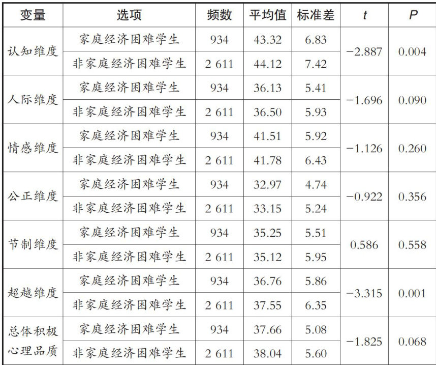 不同资助模式对家庭经济困难学生积极心理品质提升效果探究