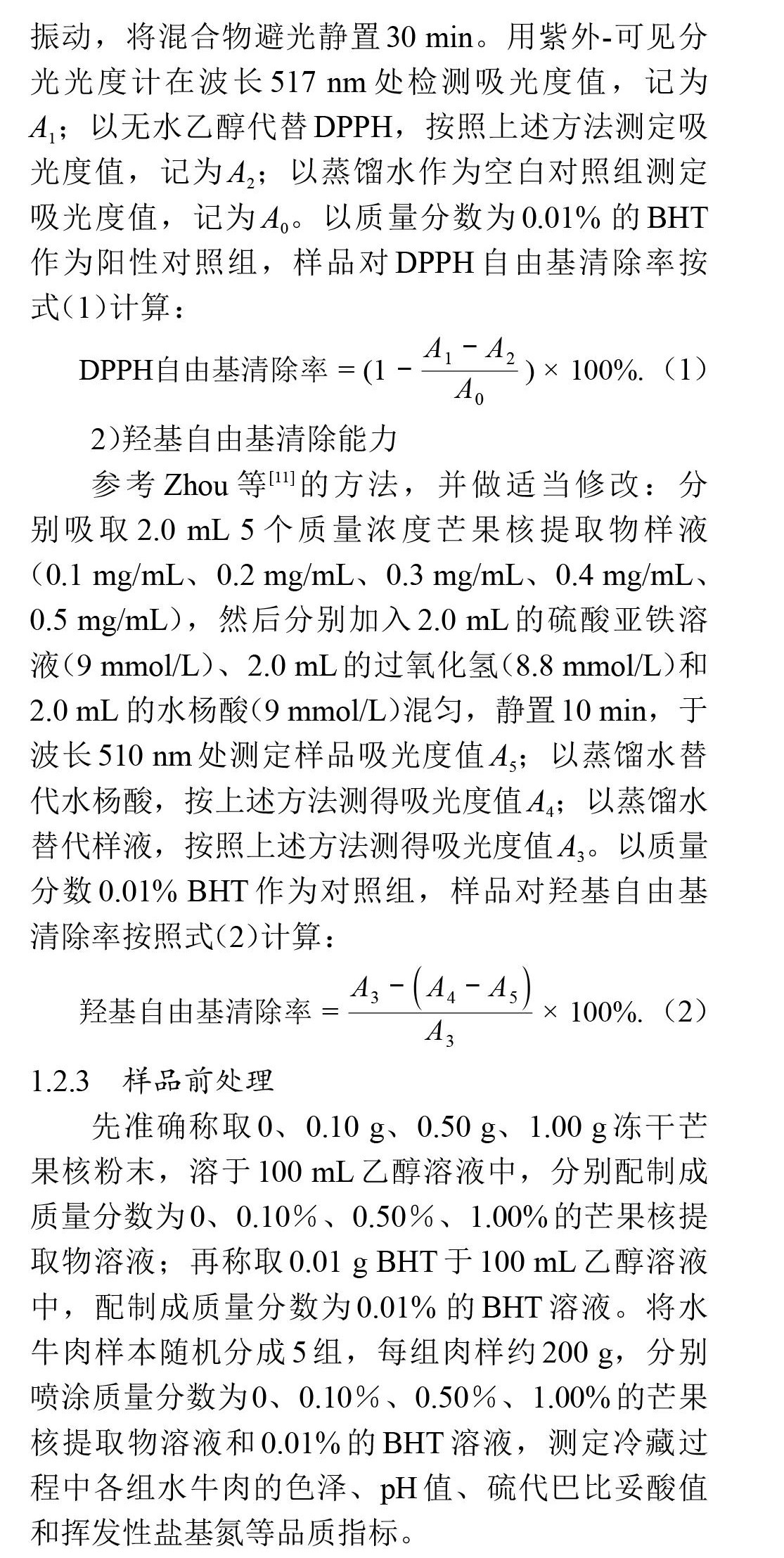 芒果核提取物对冷藏过程中水牛肉品质的影响