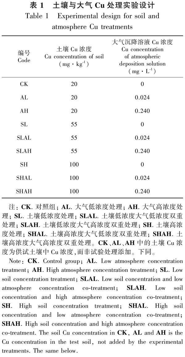 土壤与大气Cu处理下迎春的耐性和富集特征研究