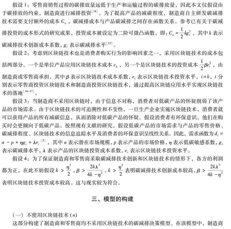 关键词:区块链技术;碳减排;投资策略;低碳供应链