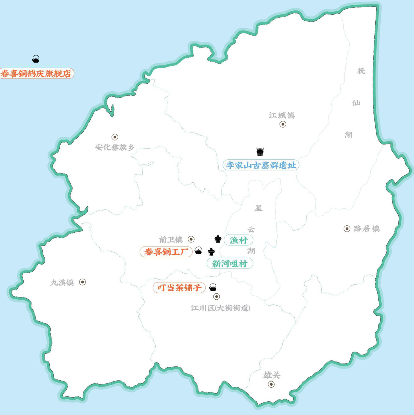 当江川的轮廓在此铺展,我们看见的不仅是山川聚落的分布,更是一部江川铜从文明根脉到产业生态的千年演进史。李家山墓群的古铜残韵早已为江川铜刻下文明的烙印。这份底蕴并未沉寂于岁月,而是在新河咀村的炉火中薪火相传,在交易流转中生生不息。时光淬炼中,这片铜脉沃土催生出多样的铜器形制、精湛的手工技艺,更孕育出扎根本土的现代品牌。(剩余212字)