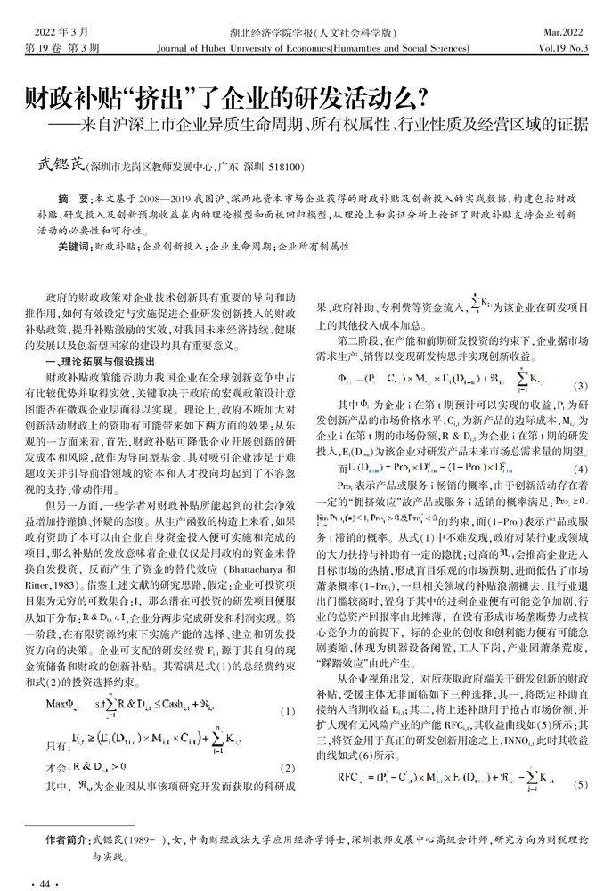 关键词:财政补贴;企业创新投入;企业生命周期;企业所有制属性