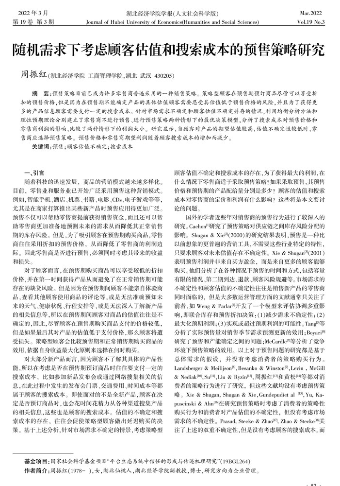 随机需求下考虑顾客估值和搜索成本的预售策略研究