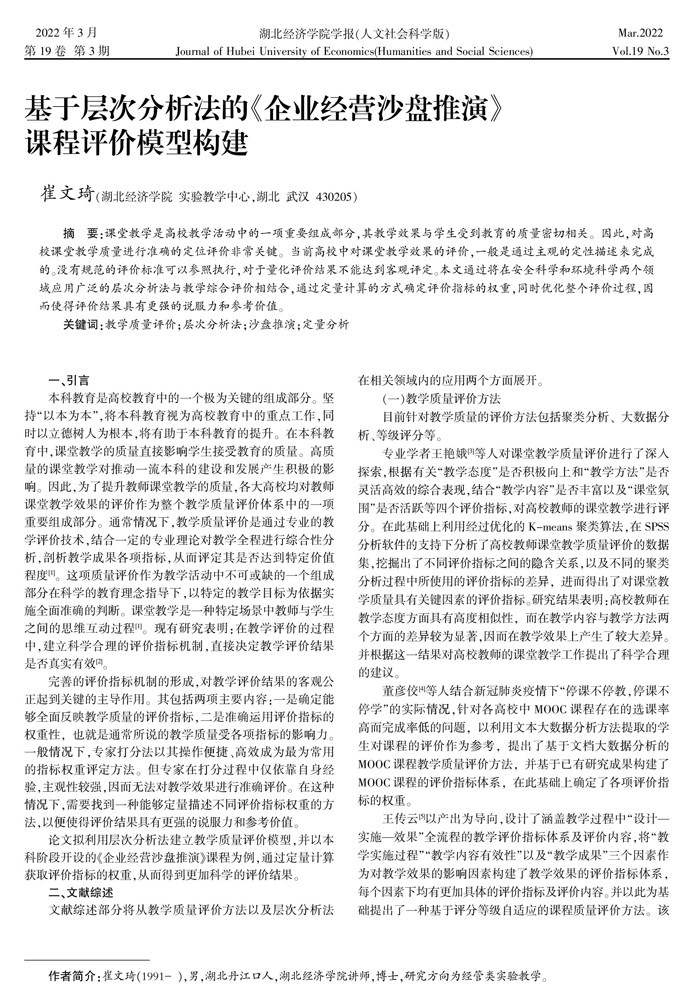 基于层次分析法的《企业经营沙盘推演》课程评价模型构建