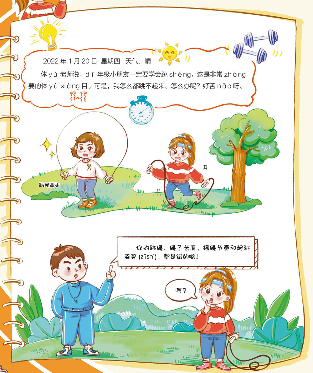 体yù老师说,dī年级小朋友一定要学会跳shéng,这是非常zhòng要的体yù xiàng目。(剩余11字)