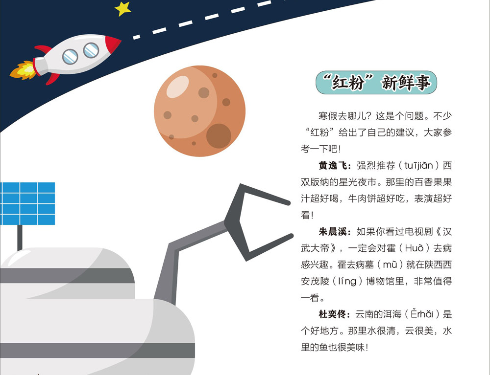 亲爱的“红粉”,接下来,你将乘坐“萌芽号”抵达“红红”星球——“红粉”的乐园。