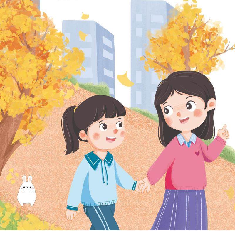 今天,我和妈妈在小区的银杏大道散步。看到从树上飘落下来的一片片银杏叶,妈妈讲起了她小时候在北方看到的秋天。