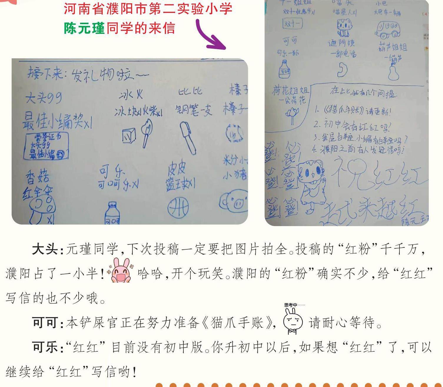 大头:元瑾同学,下次投稿一定要把图片拍全。投稿的“红粉”千千万,濮阳占了一小半! 哈哈,开个玩笑。濮阳的“红粉”确实不少,给“红红”写信的也不少哦。