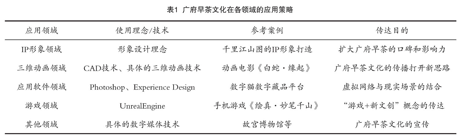 广府早茶文化作为广府文化的重要组成部分之一,其背后的文化内涵值得进一步去探索挖掘。通过使用“文化转译”的方式,从中提取广府早茶文化的特色元素,运用具体的数字媒体技术,并进行视觉设计以及数字文创的设计和制作。从而达到推广广府早茶文化以及启迪大众对该文化的传承意识的目的。