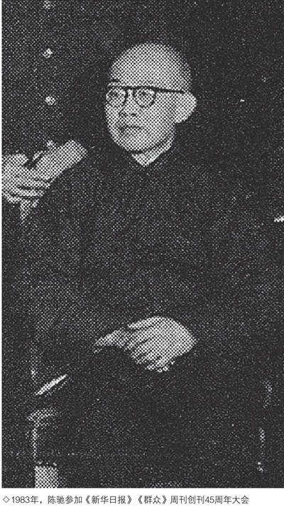 2002年,重庆红岩革命历史博物馆工作人员拜访新华报人郑新如、杨挺夫妇。他们回忆,新华日报馆有位奇人,虽双耳失聪,但与人交流没有障碍,还能帮助改稿,经重庆《新华日报》编委胡绳培养并通过自身努力,后来成为中华书局编辑。他们说的这位奇人,正是报馆资料室剪报组元老陈驰。