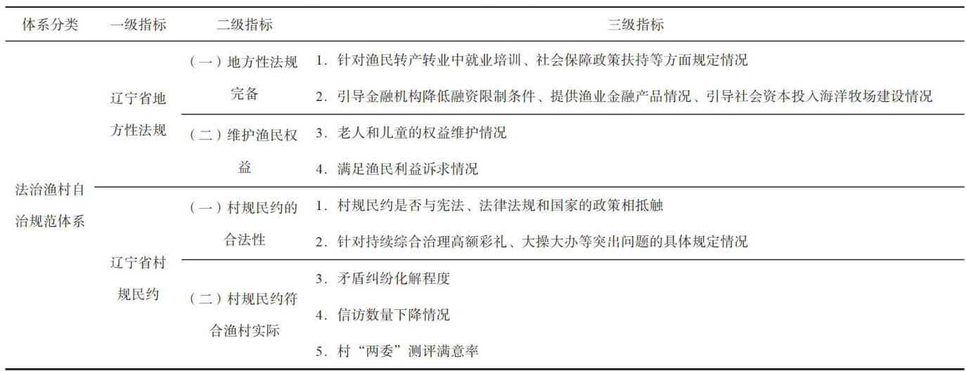 A Study on the Construction of Assessment Indicator System for Rule ofLawFishingVillagesinLiaoningProvince