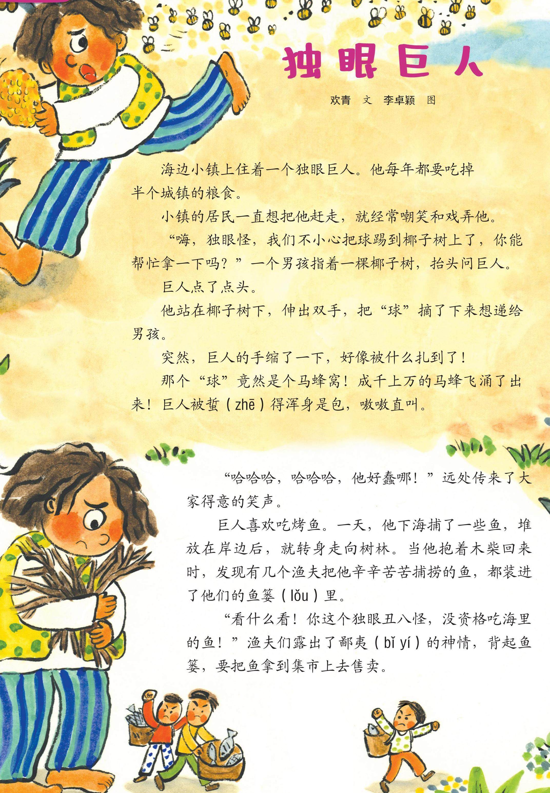 “嗨,独眼怪,我们不小心把球踢到椰子树上了,你能帮忙拿一下吗?”一个男孩指着一棵椰子树,抬头问巨人。