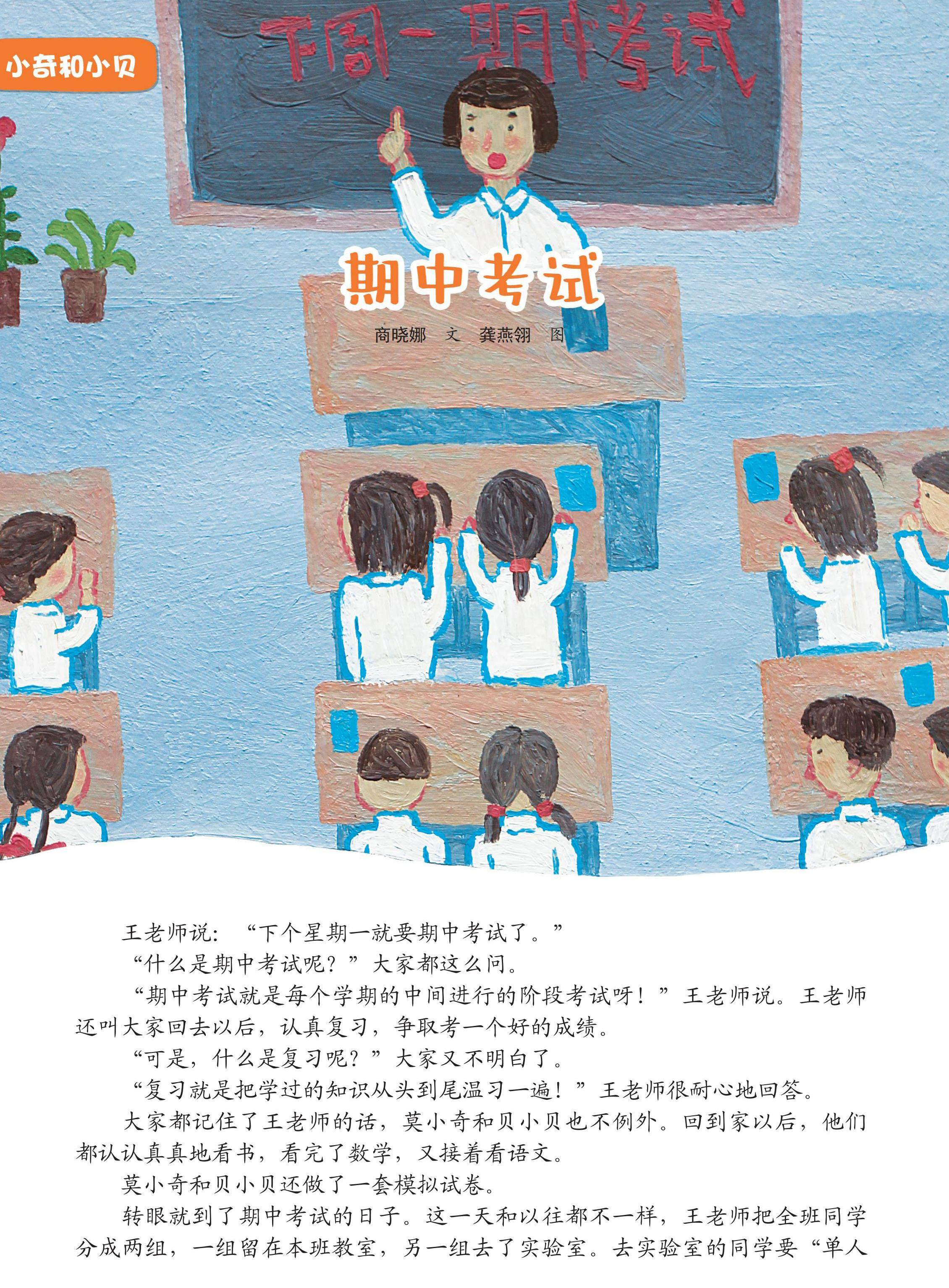“期中考试就是每个学期的中间进行的阶段考试呀!”王老师说。王老师还叫大家回去以后,认真复习,争取考一个好的成绩。