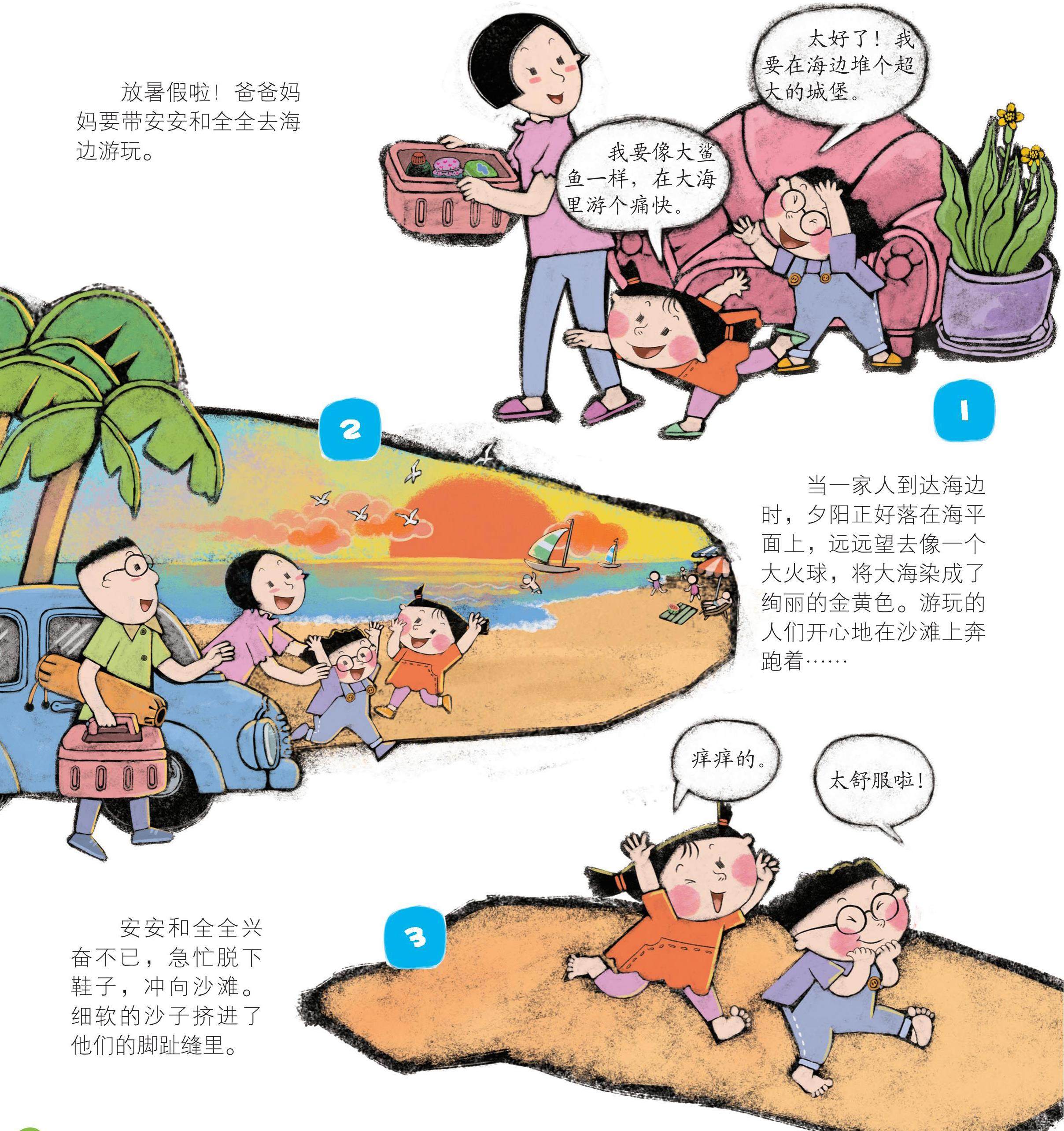 放暑假啦!爸爸妈妈要带安安和全全去海边游玩。(剩余0字)