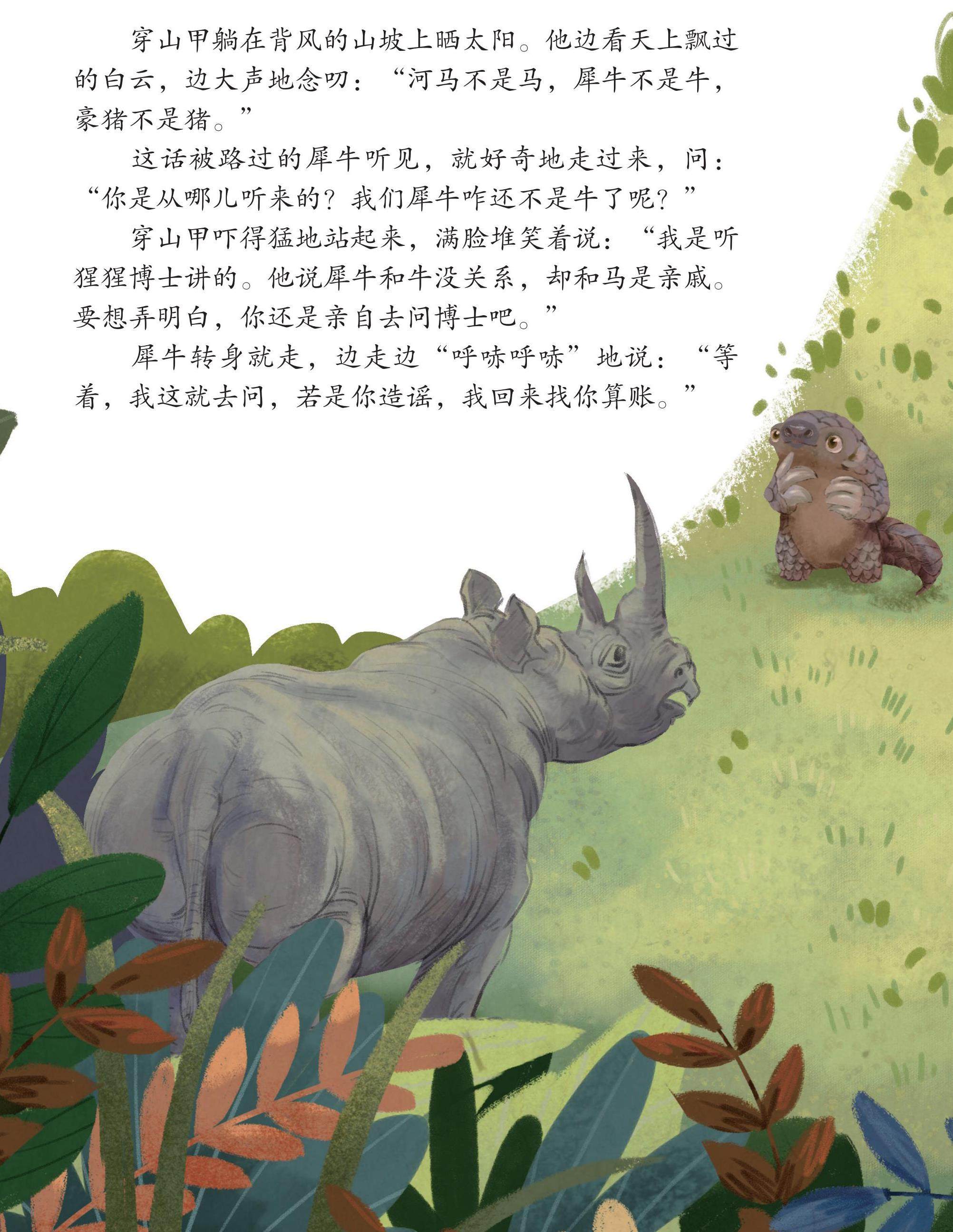 穿山甲吓得猛地站起来,满脸堆笑着说:“我是听猩猩博士讲的。他说犀牛和牛没关系,却和马是亲戚。(剩余984字)