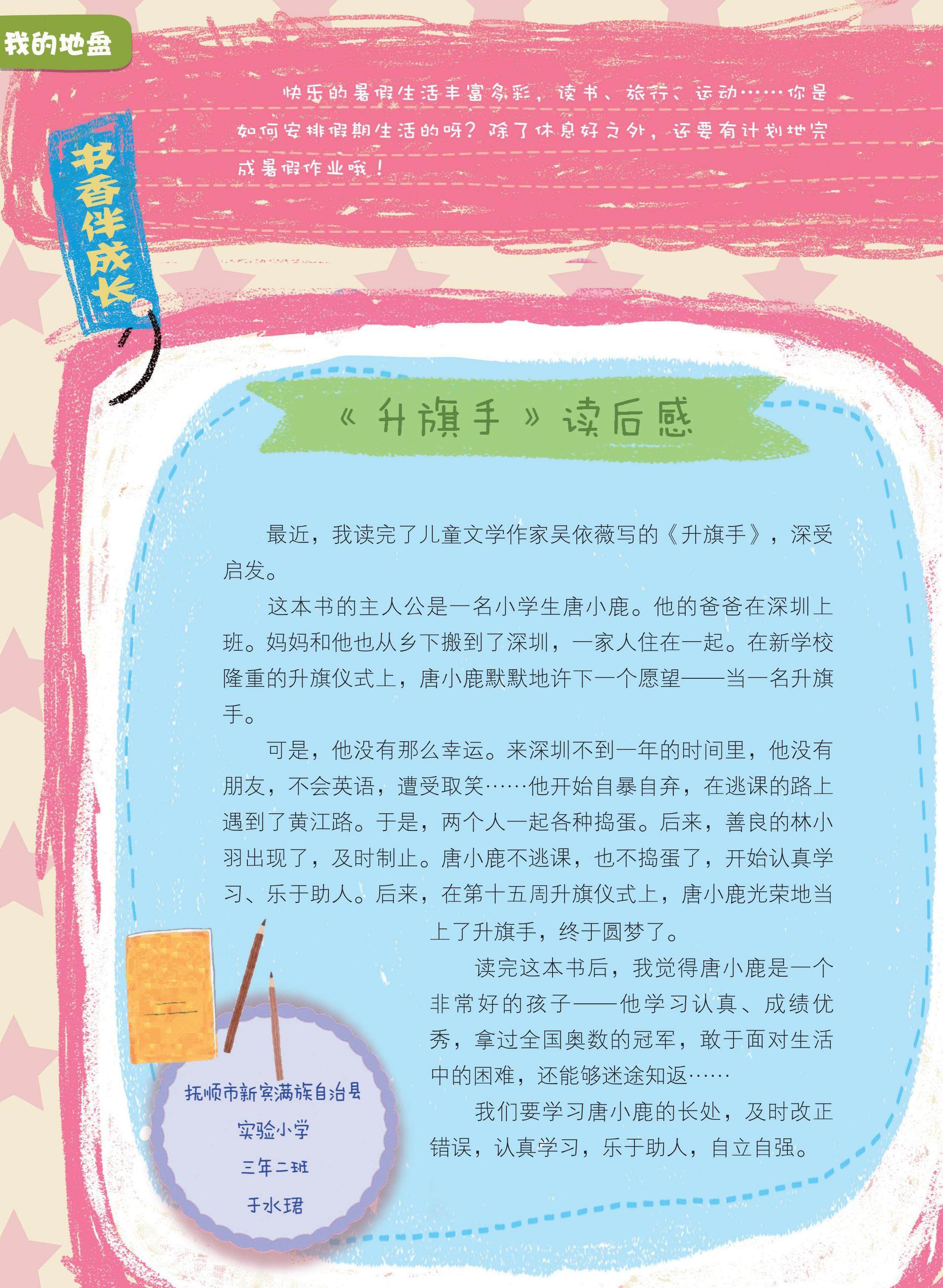 最近,我读完了儿童文学作家吴依薇写的《升旗手》,深受启发。