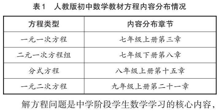 【摘 要】解方程问题是初中阶段数学知识体系中的一大重点内容,初中学生在解方程问题中容易遇到各种障碍。文章从各类型方程的典型题目着手,在具体解题实践中分析中学生解方程问题过程中的障碍及成因,探究学生主要解题障碍类型,并提出相应的教学建议,以期为一线教师提供参考。