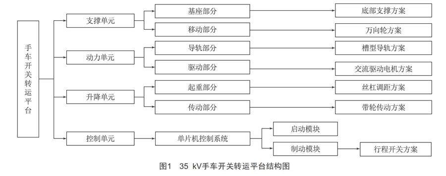 摘 要:手车开关转运到指定地点是变电检修的常见工作,针对目前通用型转运平台的欠缺,研制了一种35 kV手车开关新型通用转运平台,可有效代替人工进行手车开关的搬运和装卸,具有导轨宽度和高度可调、通用性好、转动灵活的特点,从而提高了工作效率。