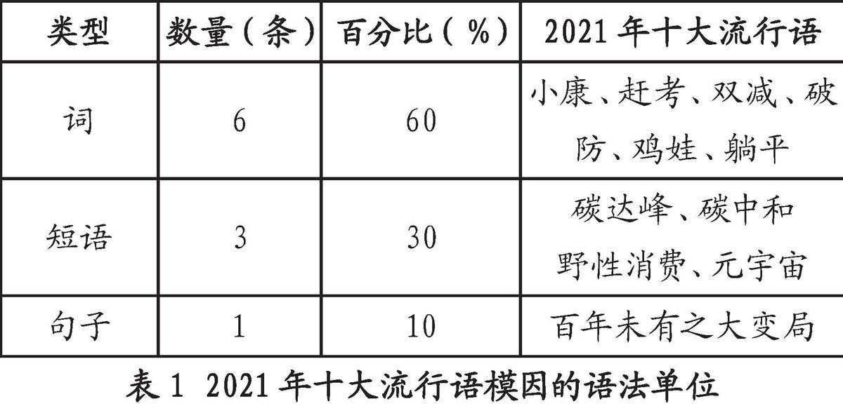 2021年十大流行语的模因论解读