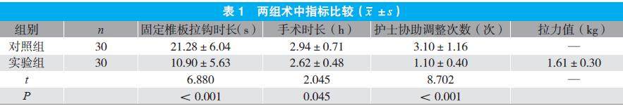 摘要:目的 探讨数字化椎板拉钩固定器在腰椎开放手术中的应用效果。方法 选取2023年6月至2024年12月医院收治的60例行腰椎开放手术患者为研究对象,按照随机数表法分为实验组与对照组各30例。实验组采用数字化椎板拉钩固定器,对照组采用传统椎板拉钩,比较两组术中指标、术后恢复指标、并发症发生情况及医护满意度。(剩余3913字)