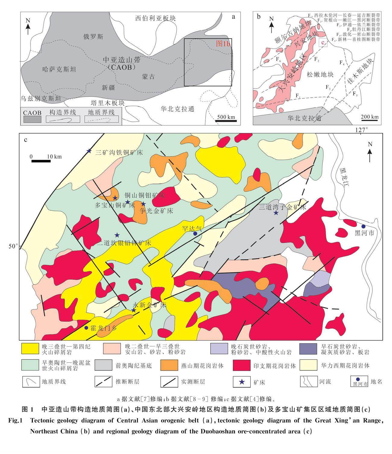 二道坎银铅锌矿床是近几年在大兴安岭东北部多宝山矿集区新发现的一个大型银铅锌矿床。矿区内共发育2条矿体,银品位最高达25 516 g/t,并伴生有铅锌、锰矿产出(铅+锌平均品位为1.2%,锰平均品位为9.5%)。矿石主要赋存于上志留统—中泥盆统泥鳅河组中,以石英脉胶结的热液角砾岩矿石为主,岩石已遭受蚀变;矿石中金属矿物主要为磁铁矿、黝铜矿、方铅矿、闪锌矿、黄铁矿、黄铜矿等;成矿阶段可划分为黄铁矿-磁铁矿-石英阶段、沥青-含银多金属硫化物阶段和碳酸盐阶段;常见的热液蚀变类型主要为硅化、碳酸盐化及赤铁矿化等。(剩余14809字)