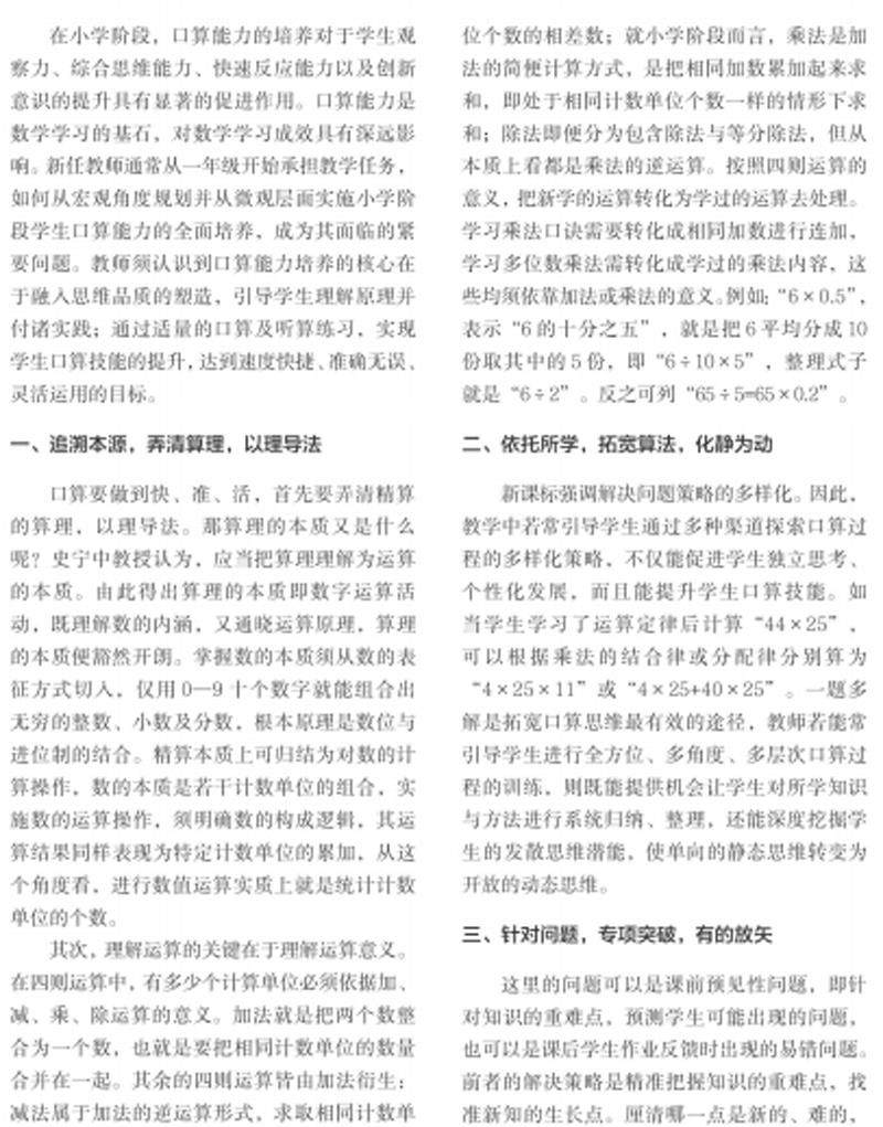 小学起始年段口算能力培养的多元策略