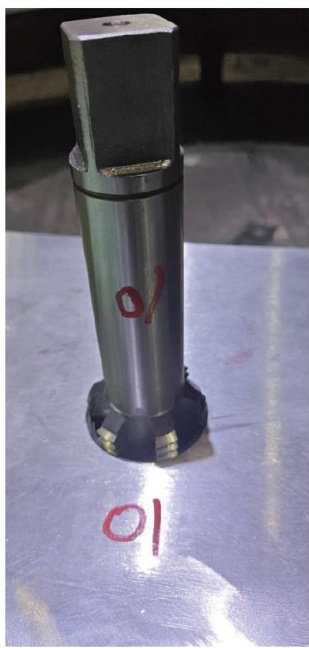 某工号矿用磨机端盖安装前,使用产品螺栓对中空轴联接螺栓孔进行试装,出现部分螺旋预紧时螺栓无法旋合到位,使用公司提供的加长丝锥第III锥重新过丝后才满足装配要求的情况。加长丝锥旋合不到位如图1所示,塞规检测不合格如图2所示。