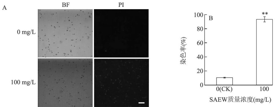Abstract:Peach fruit,characterizedbyitsthinskinandsoftflesh,ishighlysusceptibletofungal infectionsafterharvest.The resulting diseases,particularly softrot, significantlyreduce itsstorage life and marketvalue.To identifytheoptimal concentration and treatment timeof slightlyacidicelectrolyzed water(SAEW)forcontrolling postharvest soft rotin peach fruit,the causal pathogen was isolated,purified,and identified asthe strain Rhizopus stolonifer TF-1. Spores and mycelia of the pathogen were treated with SAEW at differentmass concentrations,andtheinhibitory effectswere assessed.The results showed that treatmentwith 100mg/L SAEWfor five minutes effectively reducedthesporegerminationrateofstrainTF-1,inhbitedmycelial growth,ndinducedtheleakageofcelularproteinsand nucleic acids.Propidium iodide(PI) staining revealed that 93.29% of spores exhibited compromised membrane integrity, demonstrating thesignificantbactericidal eficacyofSAEW.This studydemonstrates thatSAEWcaneffectivelysuppressthe growthof Rhizopus stolonifer,highlighting itspotentialasasafe,cost-efective,andeficientfungicidalagentformanaging postharvest soft rot in peach.